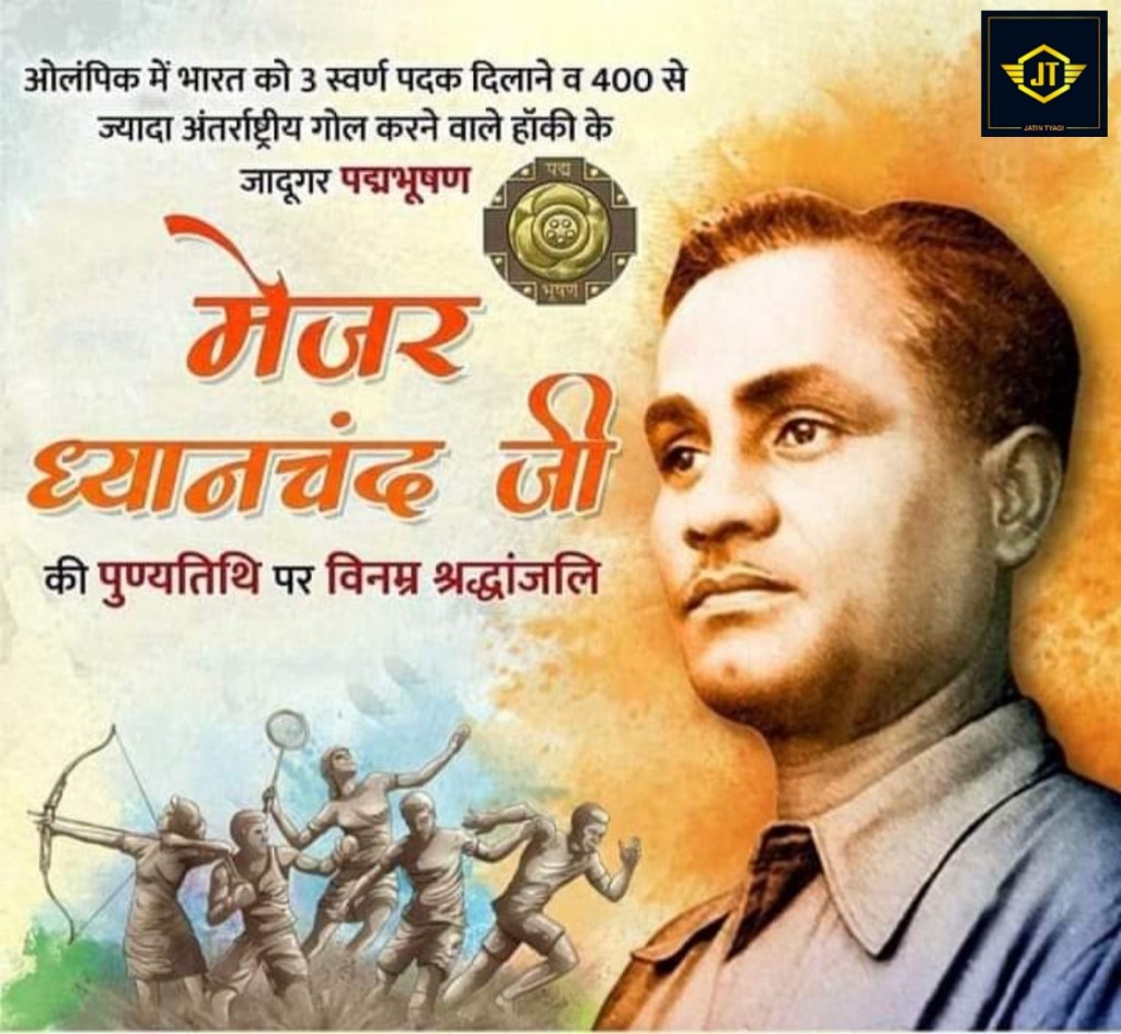 ध्यानचंद एक महान हॉकी खिलाड़ी थे, उन्होंने अपने खेल के प्रदर्शन से पूरी दुनियां में हॉकी का नाम रोशन कर दिया और इतिहास में स्वर्ण अक्षरों में अपने नाम को अंकित कर दिया जिसका नाम ध्यानचंद था।