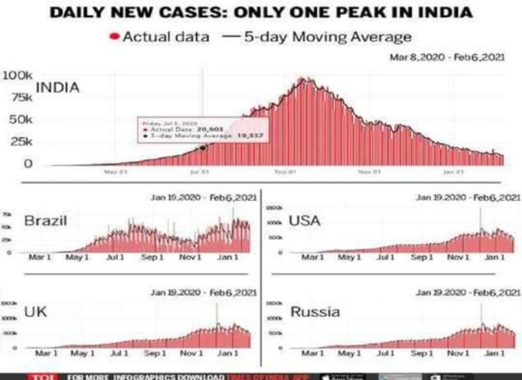 देश में कोरोना के बढ़ते मामलों ने लोगों को एक बार फिर से परेशान कर दिया है। कोरोना के दूसरी लहर को लेकर लोग आशंकित हैं। केंद्र ने महाराष्ट्र, पंजाब, गुजरात, छत्तीसगढ़, वेस्ट बंगाल, तेलंगाना, जम्मू-कश्मीर और मध्य प्रदेश समेत देश के आठ राज्यों से कोरोना संक्रमण के बढ़ते मामलों पर सख्ती से लगाम लगाने को कहा गया है। हालांकि, एक्सपर्ट्स का कहना है कि देश में कोरोना की लहर उस तरह से नहीं रहेगी जैसे विदेश में देखने को मिल रही है। दूसरे शब्दों में कोरोना की इस दूसरी लहर के कमजोर रहने का अनुमान हैं। जानते हैं इसके पीछे क्या वजह है…