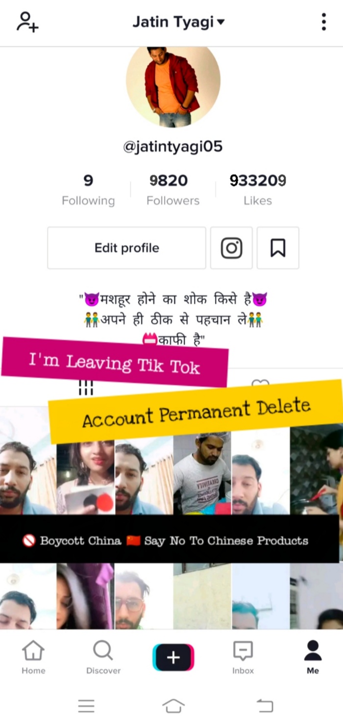 वैसे आप सबसे अब में एक साथ इस प्लैटफॉर्म को छोड़ने के लिए तो नहीं कह सकता। पर में कर रहा हूँ क्योंकि यह मेरा तरीका है देश के बाहर के प्रोडक्ट को न कहने का। शुरआत ऐप्स से कर रहा हूँ आगे आगे सब दो विदेशी है धीरे धीरे सब त्याग सिर्फ स्वदेशी अपनाऊंगा और गर्व से प्रचार करूँगा। क्योंकि जब खासकर इस दौर में जब उन्होंने हमारे देश, उसकी सेना और जवानों को इतनी मुश्किलें दीं। तो हम कैसे अपने देश से गद्दारी करे।
